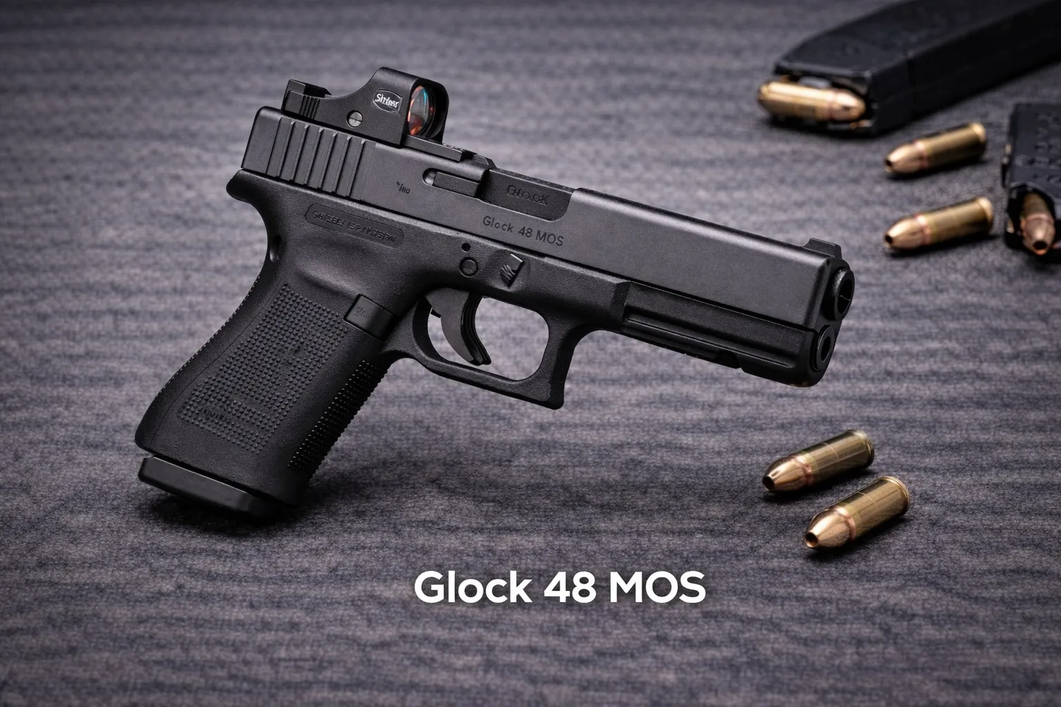 The Glock 48 MOS combines a slim 1.10-inch profile with a full-size slide for improved accuracy and control, making it the perfect balance between concealability and shootability for everyday carry.